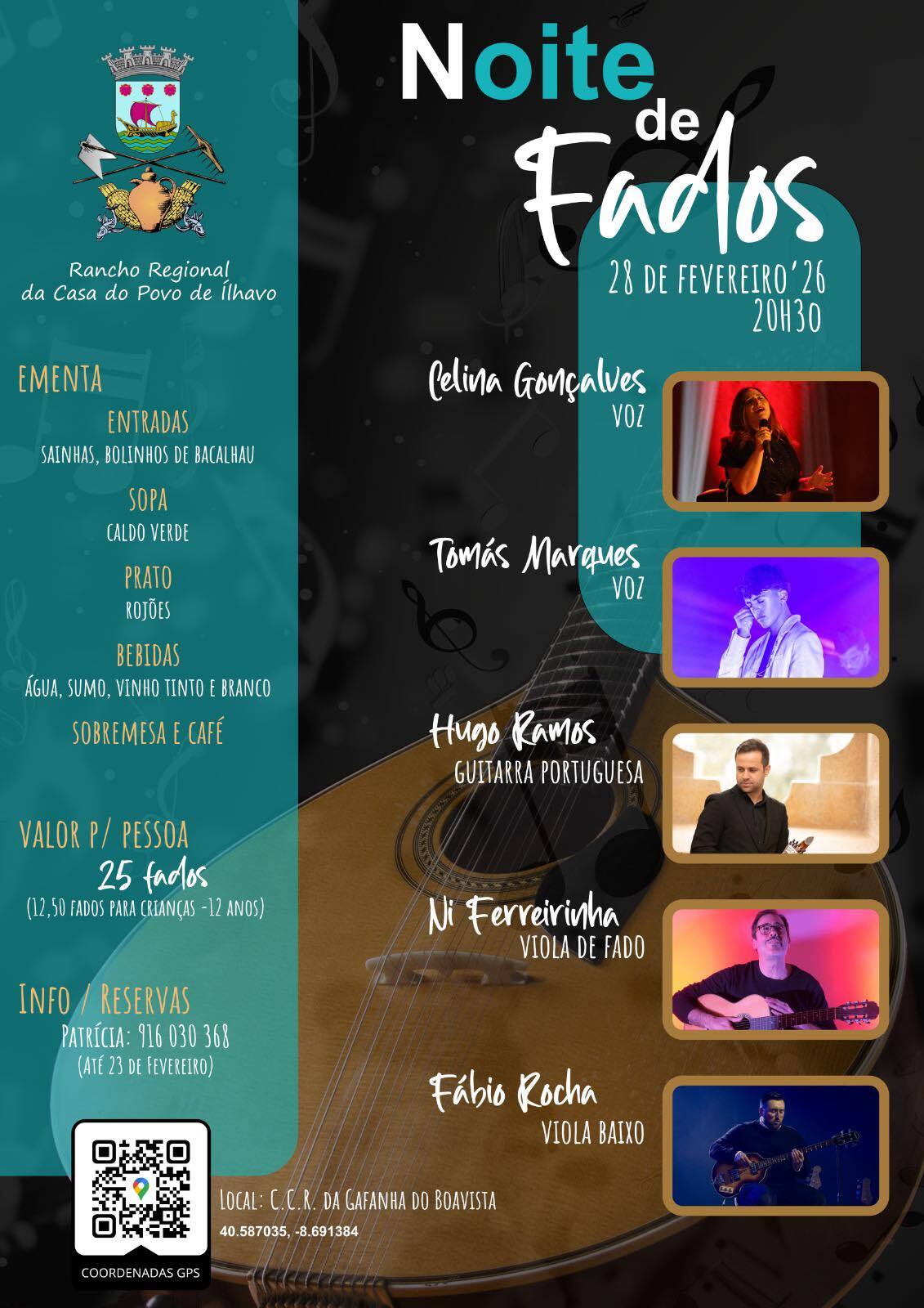Dia 28 de fevereiro haverá fados acompanhados de rojões.