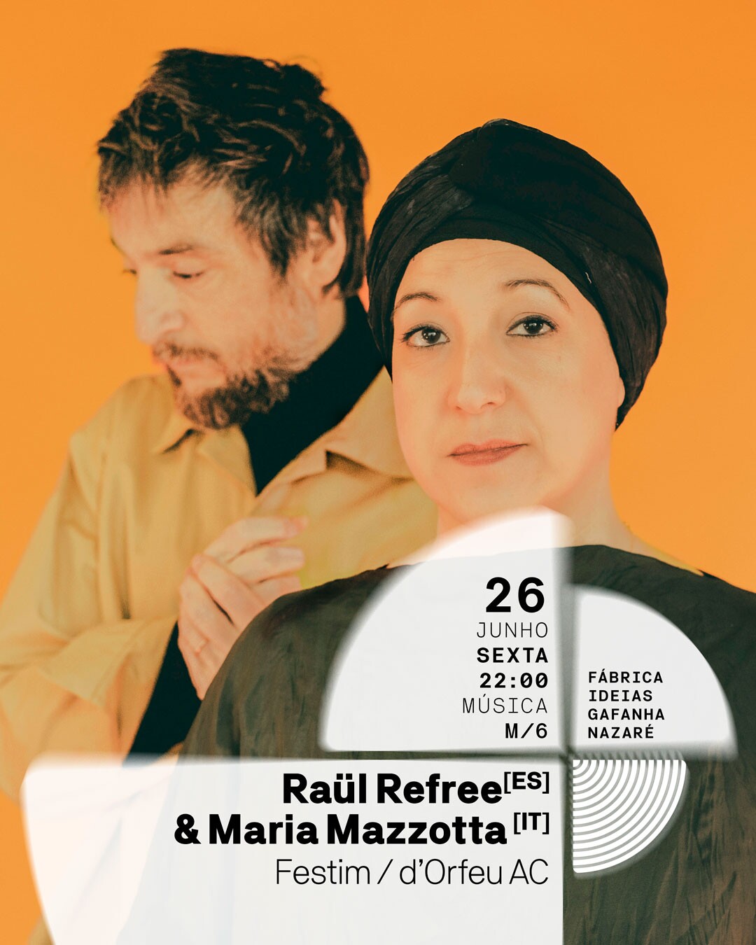 Raül Refree é um artista ímpar e um dos produtores europeus mais inovadores da última década, tendo colaborado com artistas como Rosalía e Sílvia Pérez Cruz. A versatilidade única de Maria Mazzotta faz dela uma das vozes mais importantes da cena musical da região da Apúlia, em Itália, e, sem dúvida, da world music. Juntos, apresentam-se num espetáculo imperdível - San Paolo di Galatina. A partir de instrumentos clássicos e da música litúrgica, cada tema ganha nova respiração e intensidade, desenhando um arco narrativo que atravessa a religião, o trabalho e o luto, conduzindo o público a uma experiência coletiva onde cantar se afirma como gesto de libertação e de reafirmação pessoal e social. Para desfrutar, no Festim!