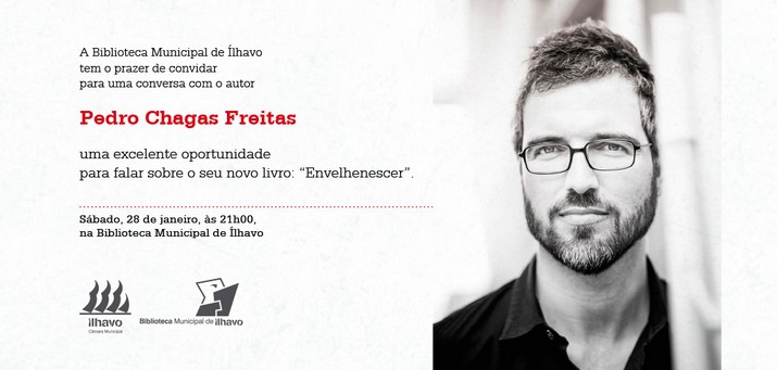 O escritor Pedro Chagas Freitas vai estar no dia 28 de janeiro (sábado), pelas 21h00, na Biblioteca Municipal de Ílhavo para uma conversa sobre escritas e livros.