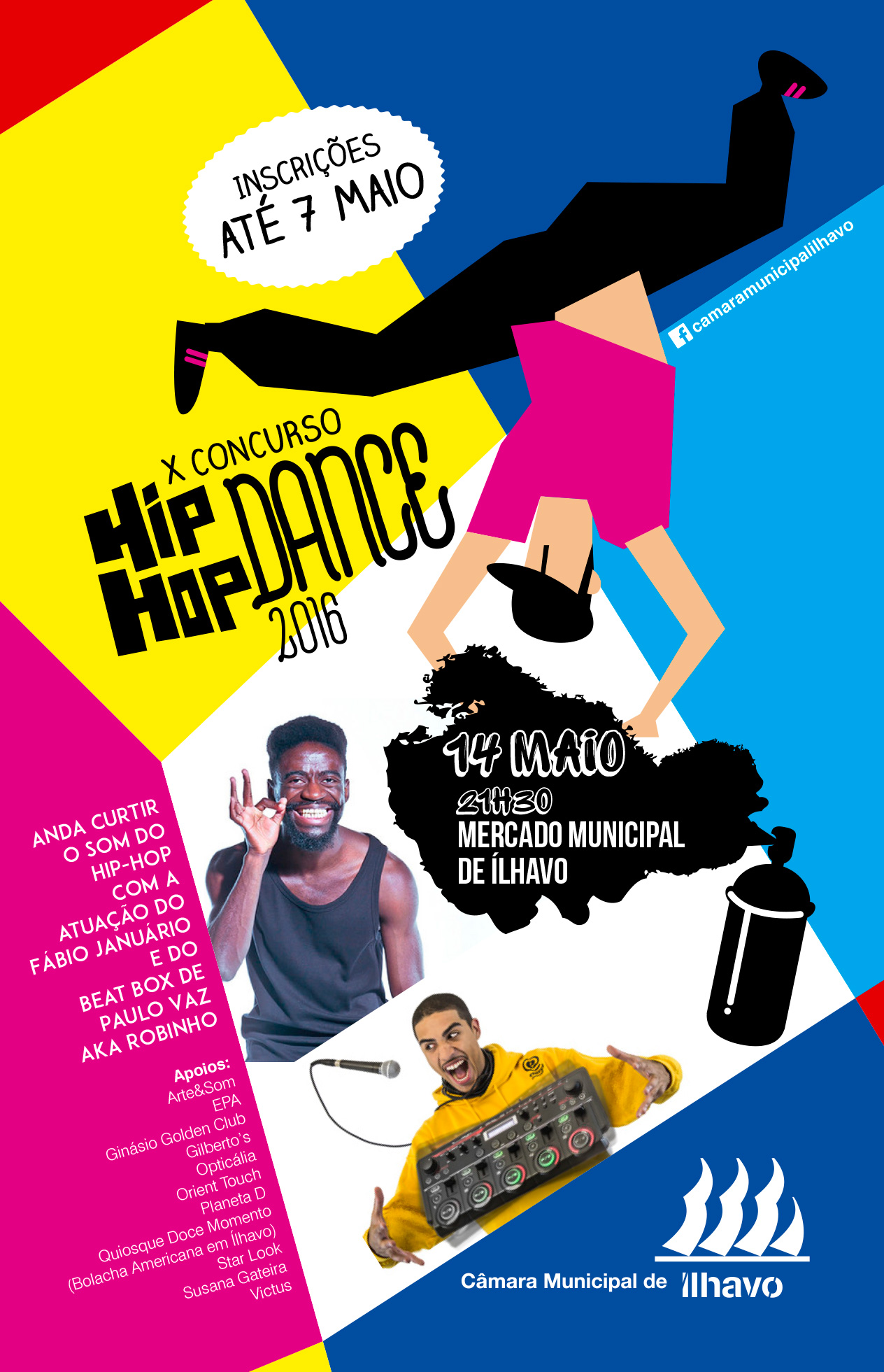 Estão abertas, até ao dia 7 de maio, as inscrições para o X Concurso de Hip-Hop Dance, que se irá realizar no dia 14 de maio, pelas 21h30, no Mercado Municipal de Ílhavo.
